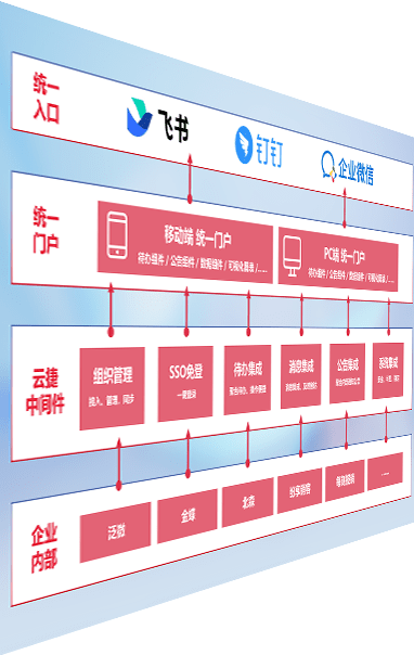 对协作平台提供支持服务,,支持企业应用与协作平台对接,,包含组织同步、、消息集成、、待办集成等。。。。支持目前主流的协作平台:钉钉、、、企微和飞书。。。